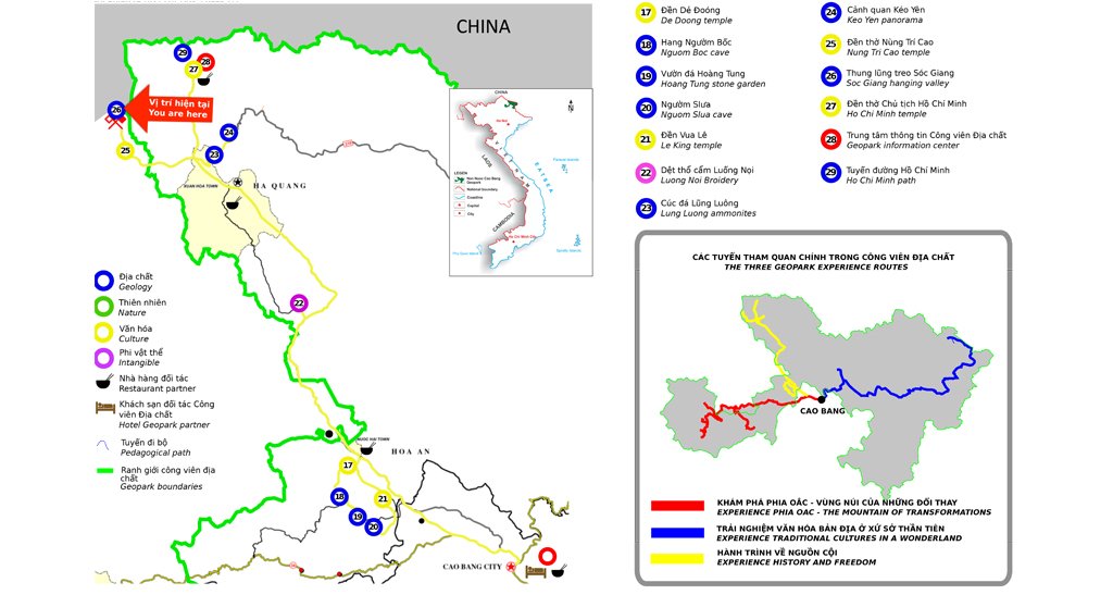 Một trong các bằng chứng của hoạt động nâng chính là “thung lũng treo” - tức là bề mặt thung lũng cổ tương đối bằng phẳng, được nâng lên treo trên sườn địa hình. Trải qua thời gian tuy bị xóa nhòa dần nhưng vẫn còn lưu giữ được hình thái cũng như các trầm tích nguồn gốc tích tụ bởi hoạt động của sông suối. Một số chóp nón đá vôi như mọc ra ở rìa “thung lũng treo” là các mặt trượt đứt gãy cổ - thuật ngữ chuyên môn gọi là “facet kiến tạo” - là dấu vết của hoạt động kiến tạo cách ngày nay chỉ khoảng 10.000 năm.