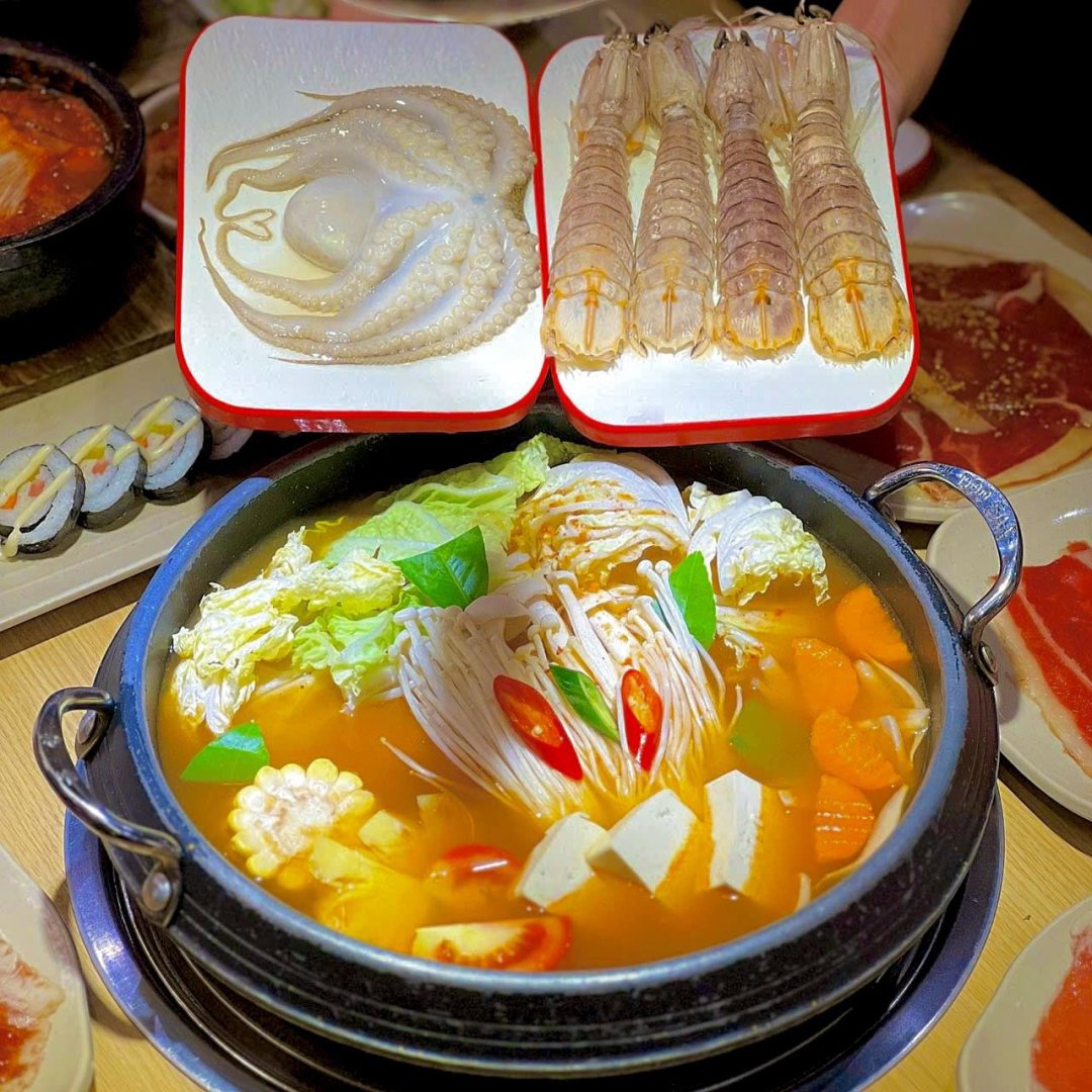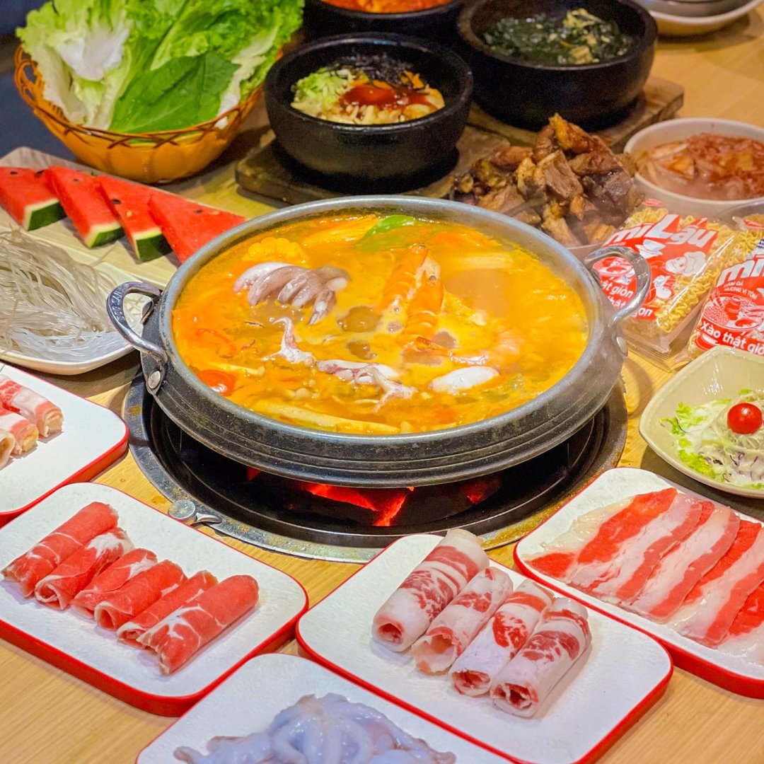 Hanwon mang đến đại tiệc buffet hơn 40 món ăn mang đậm hương vị Hàn Quốc như thịt bò Mỹ, ba chỉ nướng, hải sản, tokbokki, kimchi, cơm cuộn... Các món được trình bày hấp dẫn và thay đổi thường xuyên, giúp thực khách luôn có trải nghiệm mới mẻ mỗi lần ghé thăm.